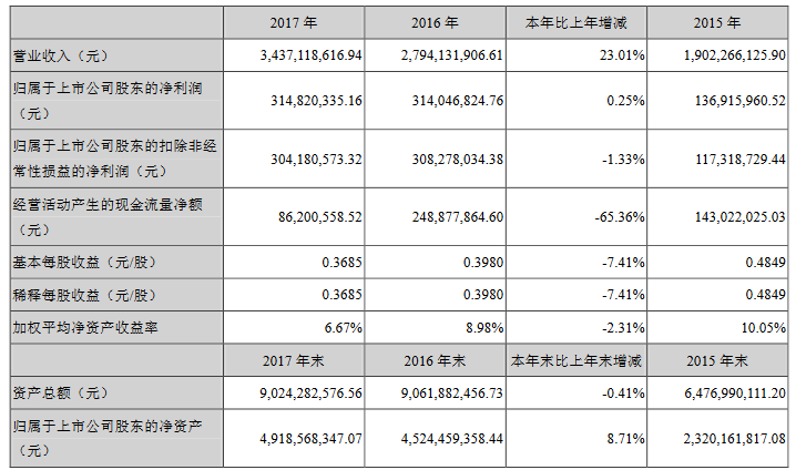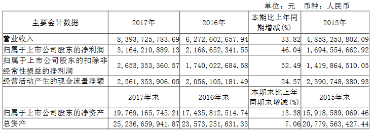 ? 三安光電2017年年度報告主要財務(wù)數(shù)據(jù)