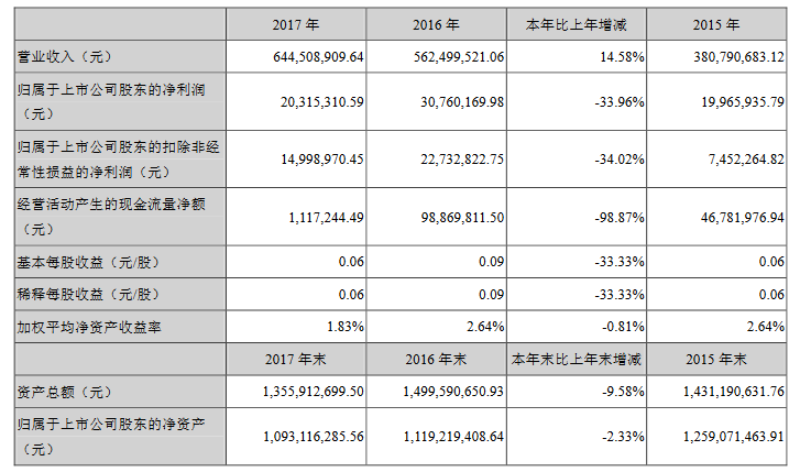 ? 雷曼股份2017年年度報告主要財務(wù)數(shù)據(jù)