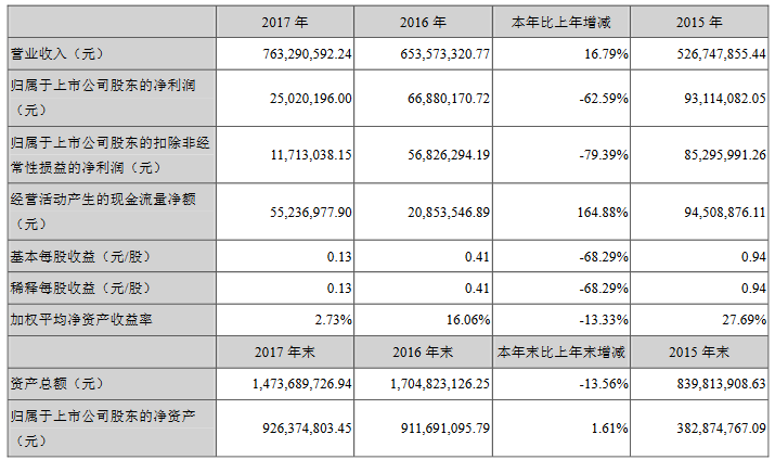 ? 珈偉股份2017年年度報告主要財務(wù)數(shù)據(jù)