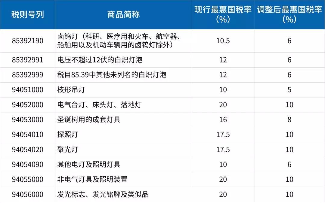 這11類照明電器產(chǎn)品進口關(guān)稅將下調(diào),7月1日起實施