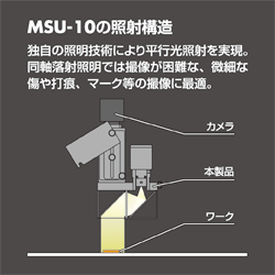 平行光同軸照明MSU/MFU series:用于檢測鏡面物體的劃痕、破損和污垢。這種平行光光學(xué)單元是為檢測反光表面上的細(xì)小裂紋、凹痕和污損而設(shè)計(jì)的。